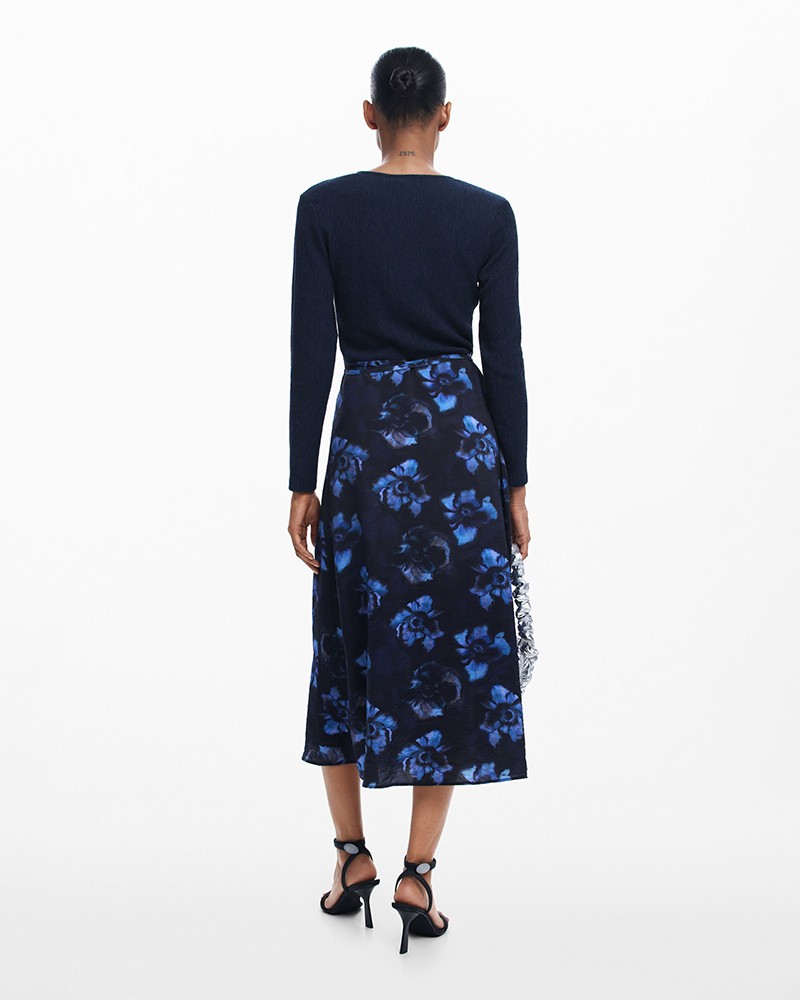 Robe midi combinée à manches courtes et jupe imprimée de fleurs