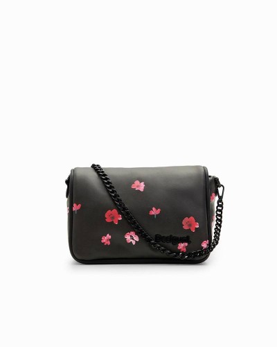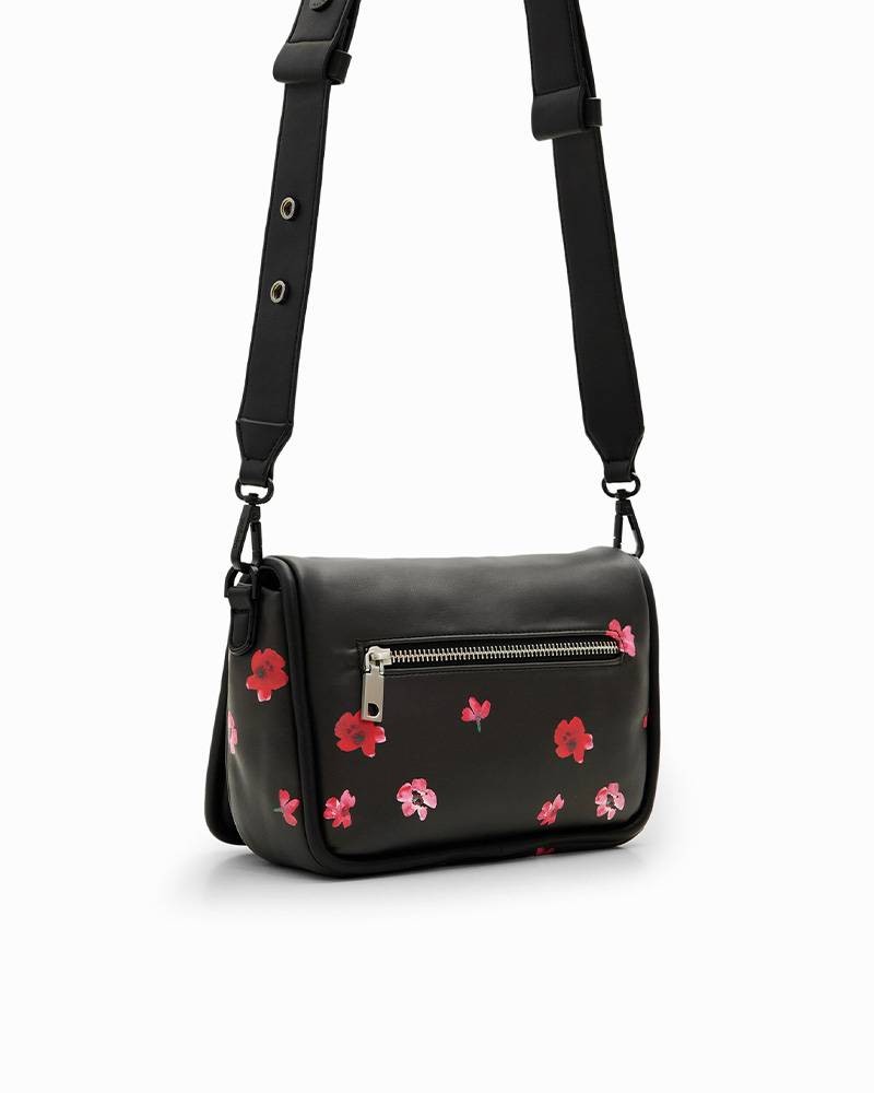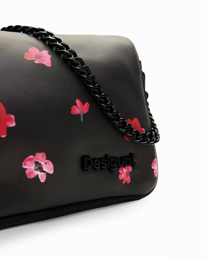 Petit sac à bandoulière en tissu effet cuir matelassé à imprimé floral.
